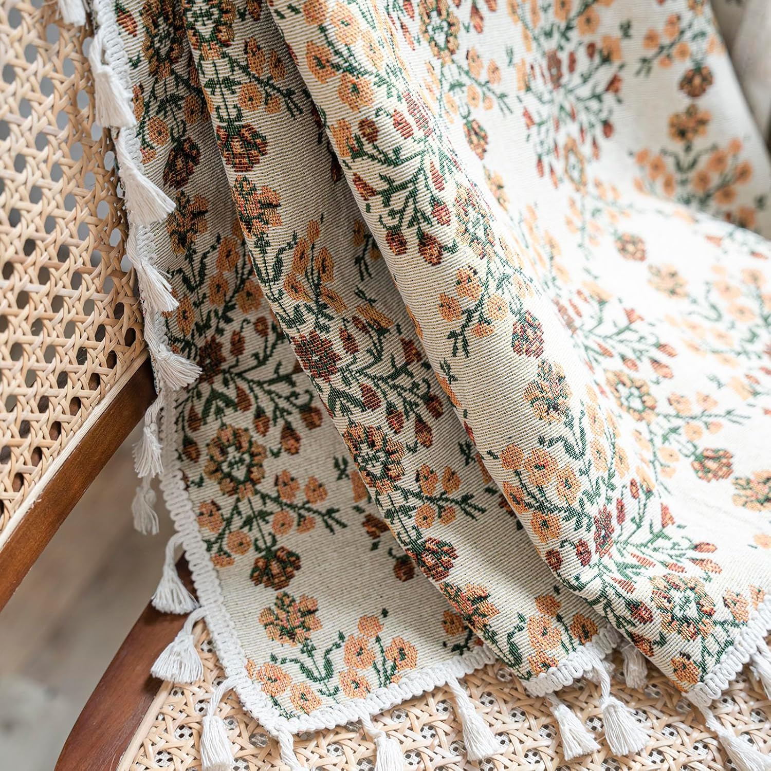 BHUSB Farmhouse Curtains for Living Room 84 Inch Length,Boho Floral Cotton Linen Window Curtains Semi-Blackout Drapes for Bedroom,Bohemian Decoration Drapes,2 Panels
