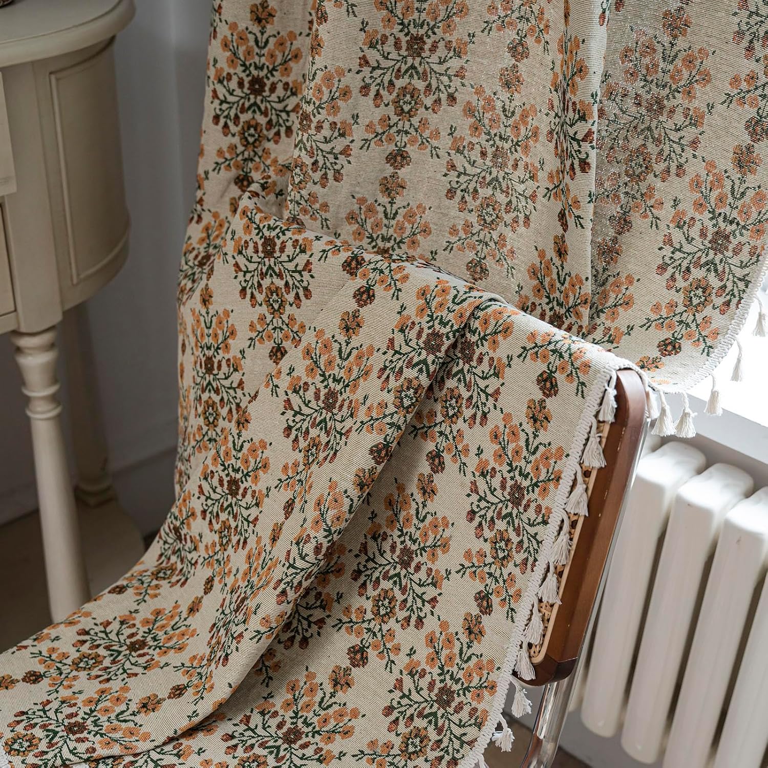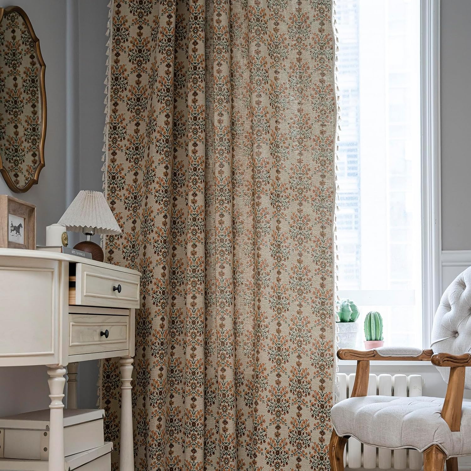 Farmhouse Curtains For Living Room 84 Inch Length,Boho Floral Cotton Linen Window Curtains Semi-Blackout Drapes for Bedroom,Bohemian Decoration Drapes,2 Panels