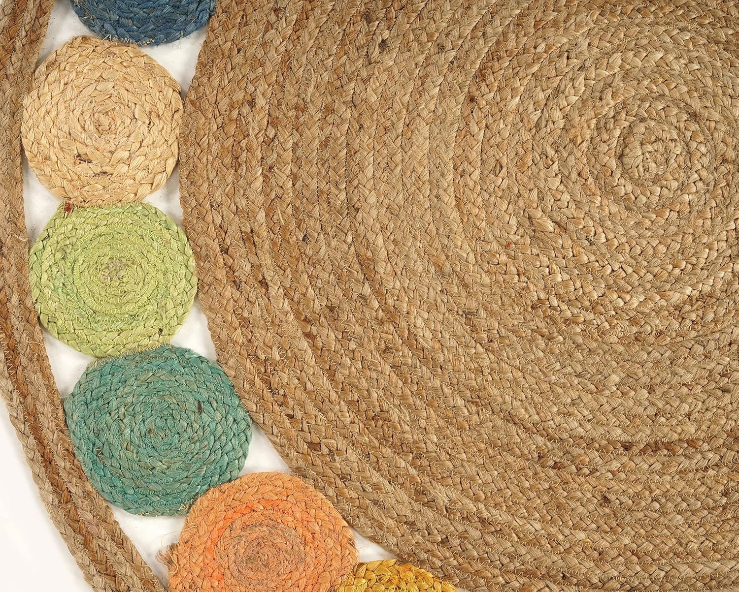 GRUHUM Round Jute Area Rug 9ft Natural Fiber Multicolour Handmade Boho Charm Farmhouse Soft Braided Rustic Vintage Rug for Indoor Kitchen Bedroom Living Room Hallways Enterways(9' feet Round)