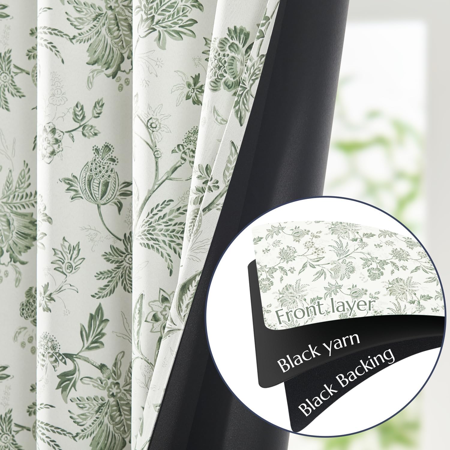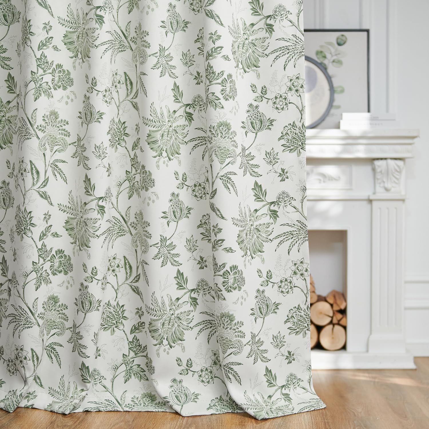 jinchan Blackout Floral Curtains for Bedroom, 96 Inches Long Printed Flower Black Out Curtains, French Country Back Tab Sage Green Window Treatment Farmhouse Drapes Set 2 Panels Green