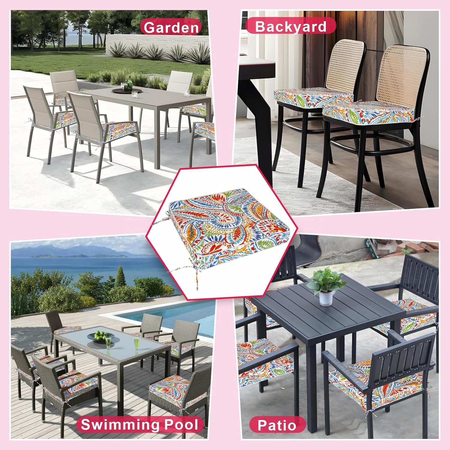 JMGBird Outdoor Chair Cushions Set of 4, Water Resistant Seat Cushions 19 x 19 Inch with Ties Outdoor Cushions for Patio Furniture