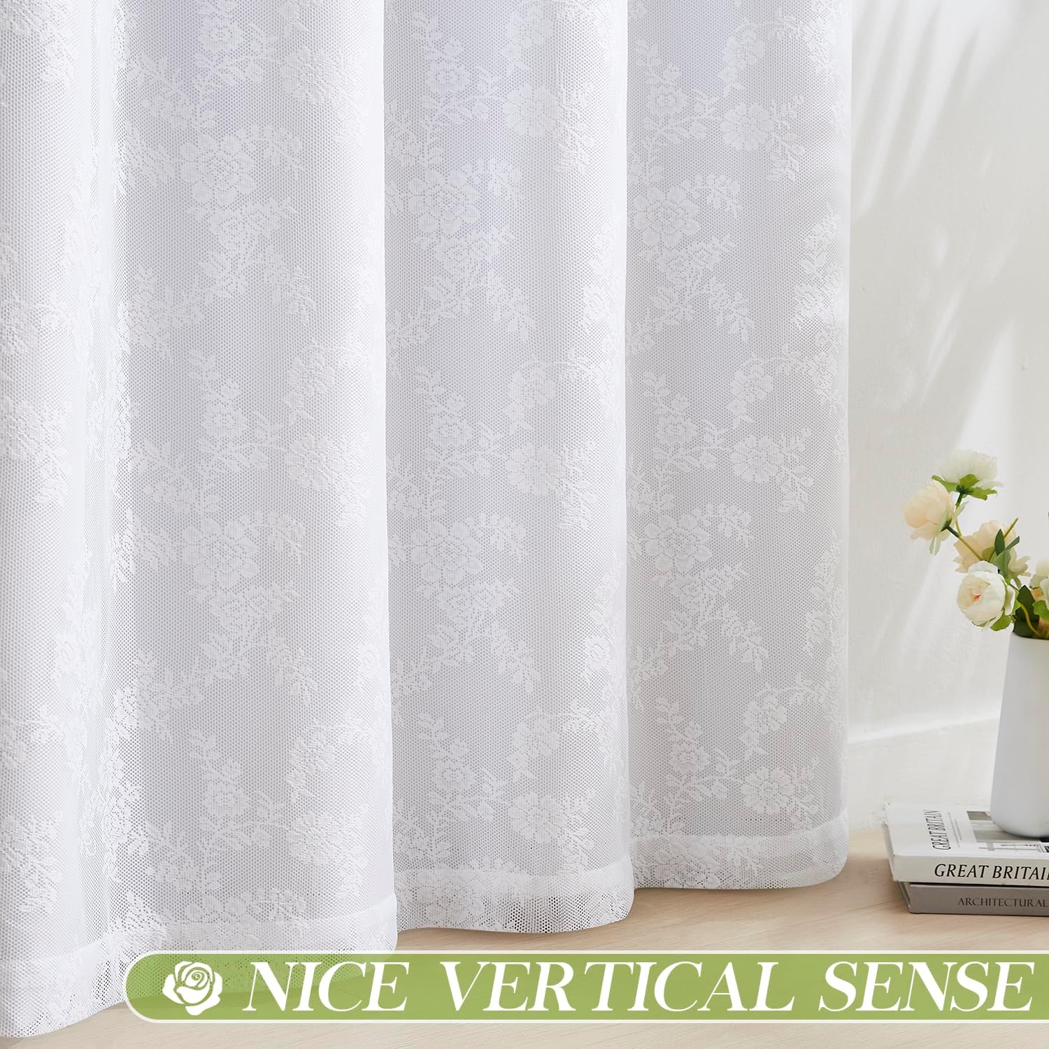 Mix and Match Curtains - Full Blackout White Drapes with Vintage Floral White Lace Panels for Bedroom 84 Inch Length Living Room Solid Thermal Insulated 4 Piece Curtain Set, Grommet Top, 52" W