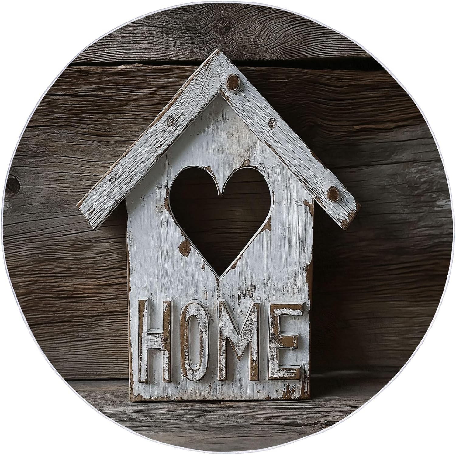 Round Area Rug 7 ft Country Style White Wood House Non-Slip Washable Round Rug, Tan Accent Carpet for Dining Room, Living Room, Bedroom, Entryway and Kitchen