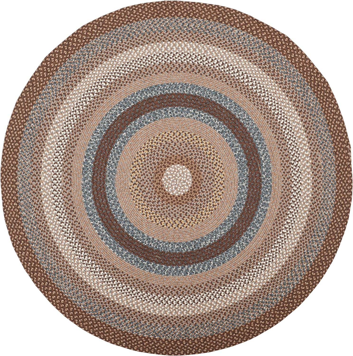 SAFAVIEH Braided Collection Area Rug - 8' Round, Brown & Multi, Handmade Country Cottage Reversible, Ideal for High Traffic Areas in Living Room, Bedroom (BRD313A)