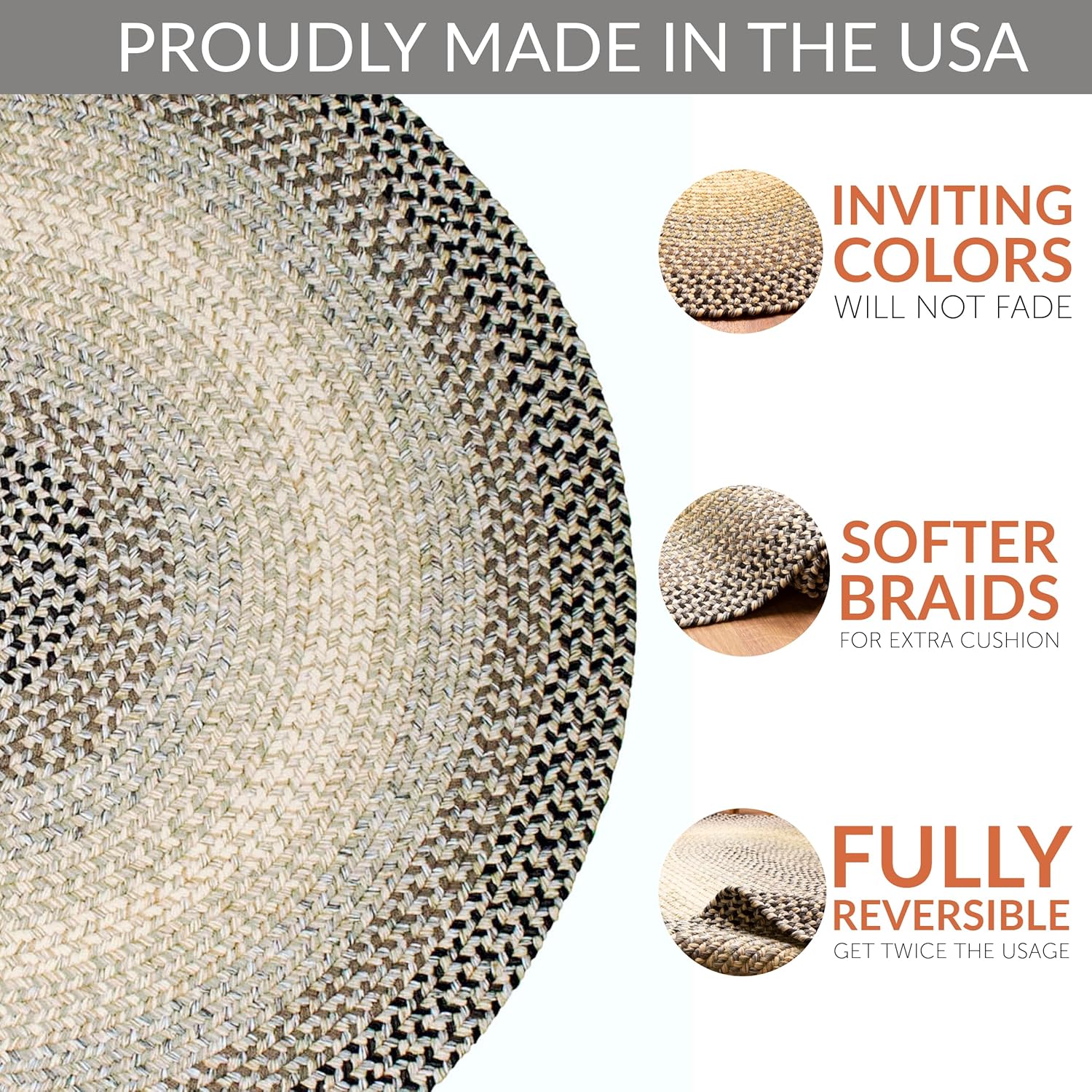 Super Area Rugs Braided Rugs Round 4ft Farmhouse Kitchen Rug - Ridgewood Gray Braided Rug for Dining Room Table - Reversible - Indoor/Outdoor - Made in USA - Graphite/Beige, 4' Round